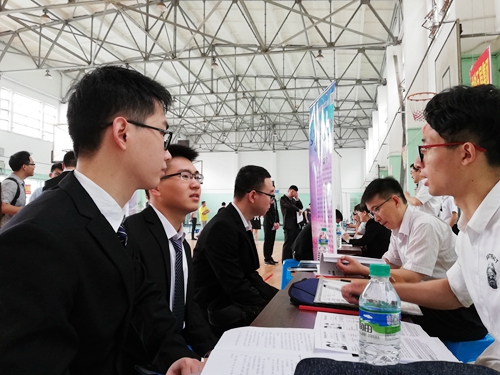 朱卫国走访慰问了21家二级招聘单位,对公司HR表示欢迎,并仔细了解国际工程班专业需求和发展前景等情况。招就处及相关学院负责人提前来到招聘会现场,为学生加油打气,希望更多学生能把握机遇。