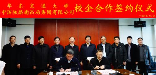 1月31日,我校与中国铁路南昌局集团有限公司正式签署校企合作协议。校党委书记万明,校长罗玉峰,副校长黄稚龙,中国铁路南昌局集团有限公司董事长、党委书记王培,副董事长、总经理马叶江,工会主席戴平峰出席签约仪式。罗玉峰和马叶江分别代表校企双方在合作协议书上签字。