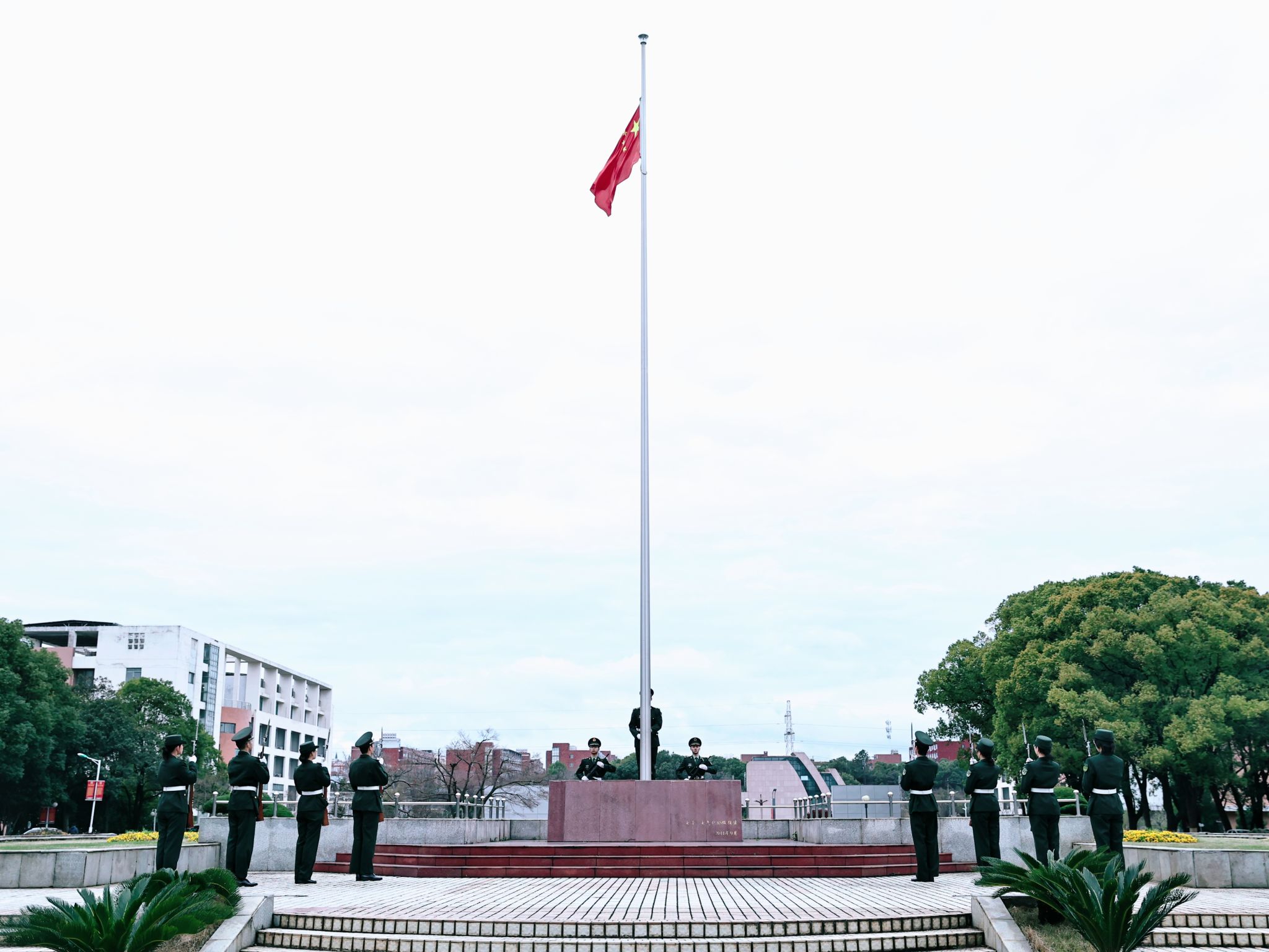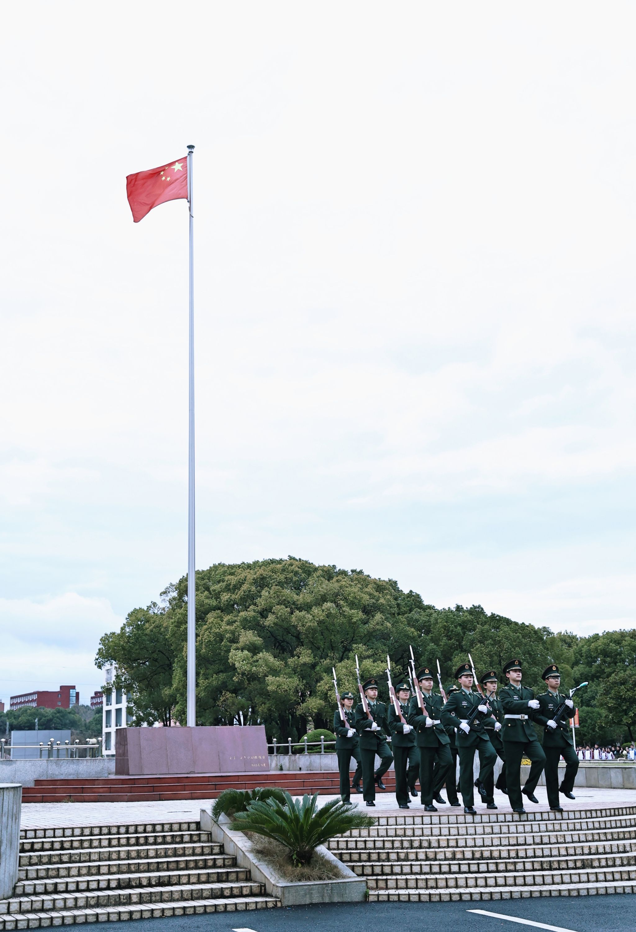 升旗仪式正式开始,中心广场庄严肃穆。国旗护卫队步伐铿锵、整齐有力,迈着坚定的步伐登上旗台。伴随着雄壮嘹亮的《义勇军进行曲》,鲜艳的五星红旗冉冉升起、迎风飘扬。全体师生整齐肃立,高唱国歌,目光坚定,以最饱满的精神状态向祖国致敬,迎接新学期的到来。