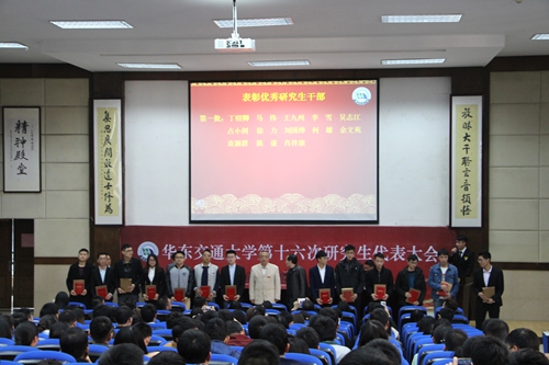 大会听取并审议通过了第十五届研究生会主席所作的《华东交通大学第十五届研究生会工作报告》,审议通过了《华东交通大学第十六届研究生委员会委员选举办法》,选举产生了第十六届研究生委员会委员、执行委员,表彰了2015-2016学年优秀研究生干部。