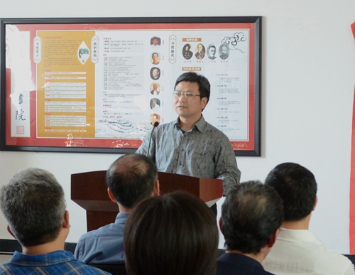团省委书记曾萍、省文化厅副厅长郎道先、省人大常委会办公厅副主任巫欣春、省委教育工委宣传部部长曾青生,校党委书记万明、副书记汪立夏,书院山长尹建维、名誉山长宗九奇等出席揭牌仪式。