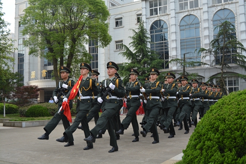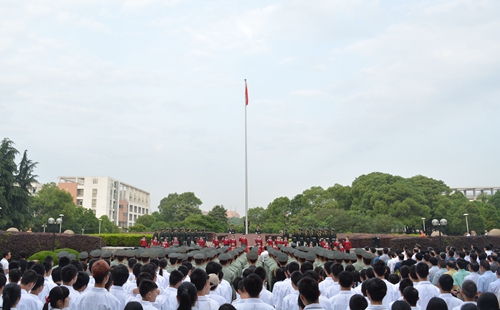 5月4日清晨,全体在家校领导、中层干部、国防生和师生代表、附属学校学生在综合楼前的中心广场集合,参加庄严的升国旗仪式,纪念“五四”爱国运动97周年。