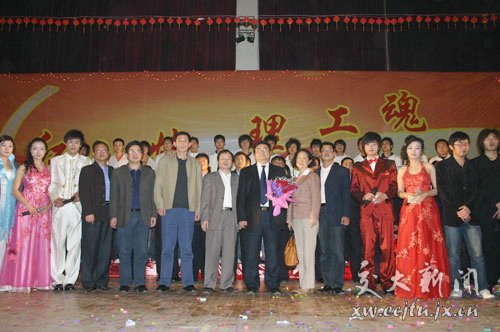 演出结束后,理工学院(黄家湖)董事长、党委书记陈志胜及其他院领导纷纷上台与演出人员一一握手并合影留念。