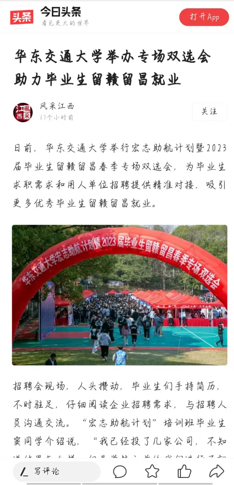 日前,华东交通大学举行宏志助航计划暨2023届毕业生留赣留昌春季专场双选会,为毕业生求职需求和用人单位招聘提供精准对接,吸引更多优秀毕业生留赣留昌就业。