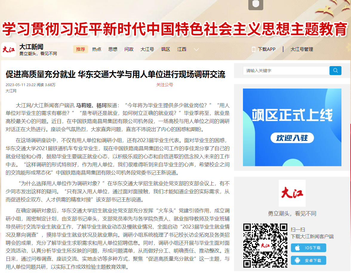 “为什么选择用人单位作为调研对象?”在华东交通大学招生就业处党支部的支部会议上,有不少同志发出这样的疑问。“只有深入用人单位,通过面对面接触,我们才能知道企业的实际需求,从而促进校企双方、人才供需的精准对接”该支部书记王彤说道。