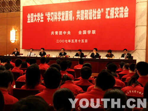 5月15日,共青团中央、全国学联在人民大会堂举办全国大学生“学习科学发展观,共建和谐社会”汇报交流会暨中国大学生骨干培养学校首届培训开学典礼。以此为标志,全国“青年马克思主义者培养工程”正式启动。 ...